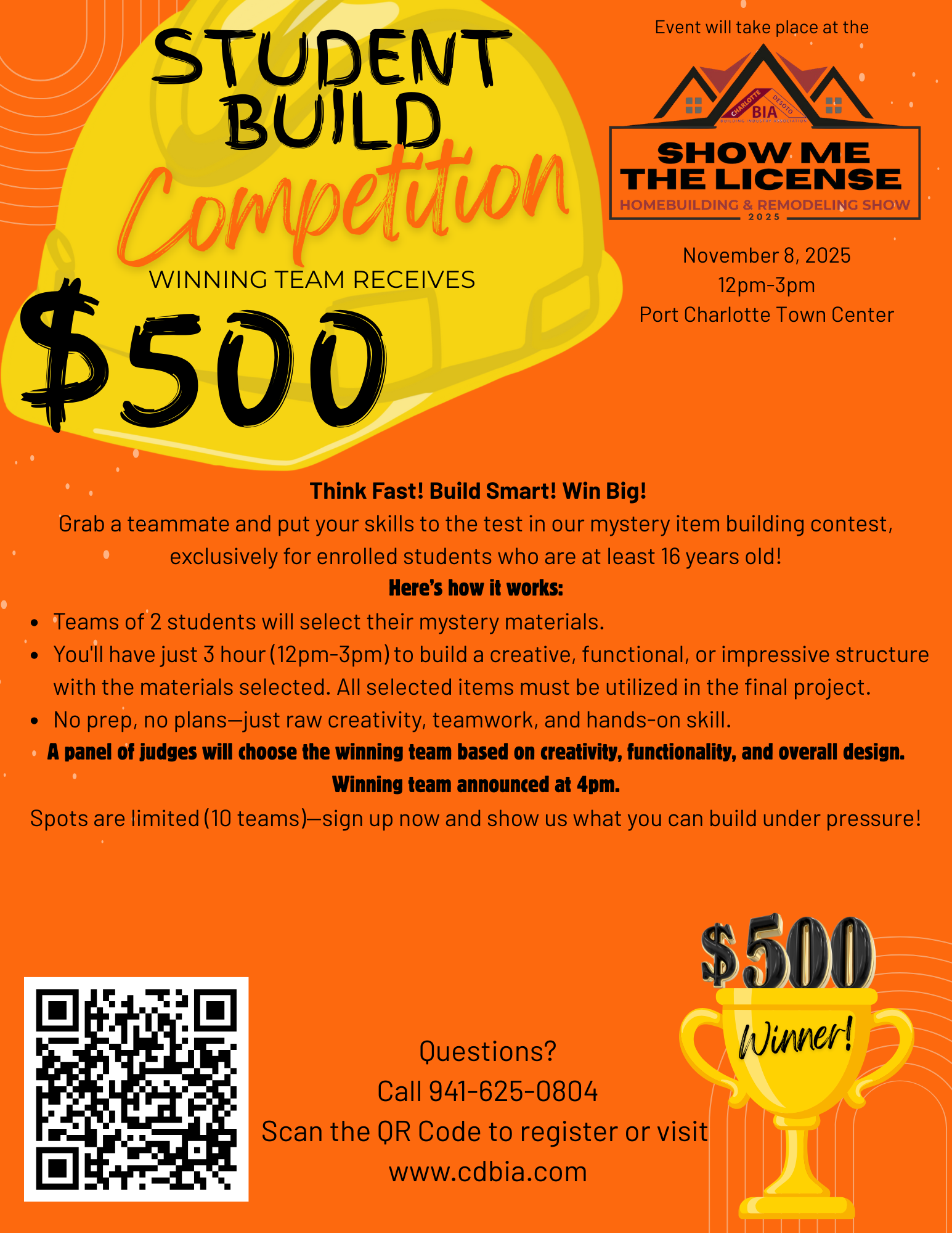 This one-day event is designed to connect the community with trusted, licensed contractors, builders, and industry professionals in Charlotte and DeSoto counties. Attendees will have the opportunity to explore services, products, and expert guidance to ensure they hire qualified professionals for their construction and renovation needs.